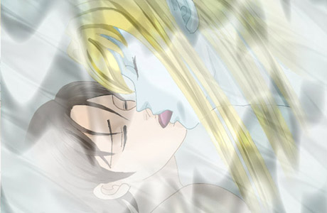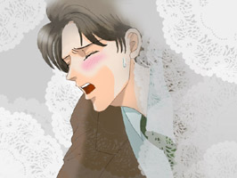 視線をそらせた僕をラキエは会議室の机に押しつけ、イヤだと言う前に唇を塞いだ。 「……う、」 ラキエのキスはいつだって僕を昂らせる。 舌に絡んで奥をくすぐって上顎を撫でて歯の裏にしのびこんで。 ……甘い、唾液。 悪魔のキスは僕を堕とす。 滴る毒は蜜の味だ。とろとろと僕の芯を伝って快感に火をつける。 |